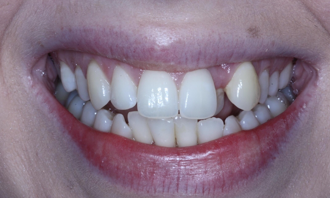 24 yr old patient with upper and lower arch crowding. Treated with upper and lower clear fixed appliances over 23 months